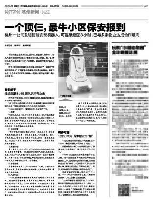6月29日,浙江YABO鸭脖机器人技术有限公司发布新款“智能安防机器人”,目前已经和杭州多家物业达成合作意向。最快下半年,他就要出现在杭州某个高档小区里了。